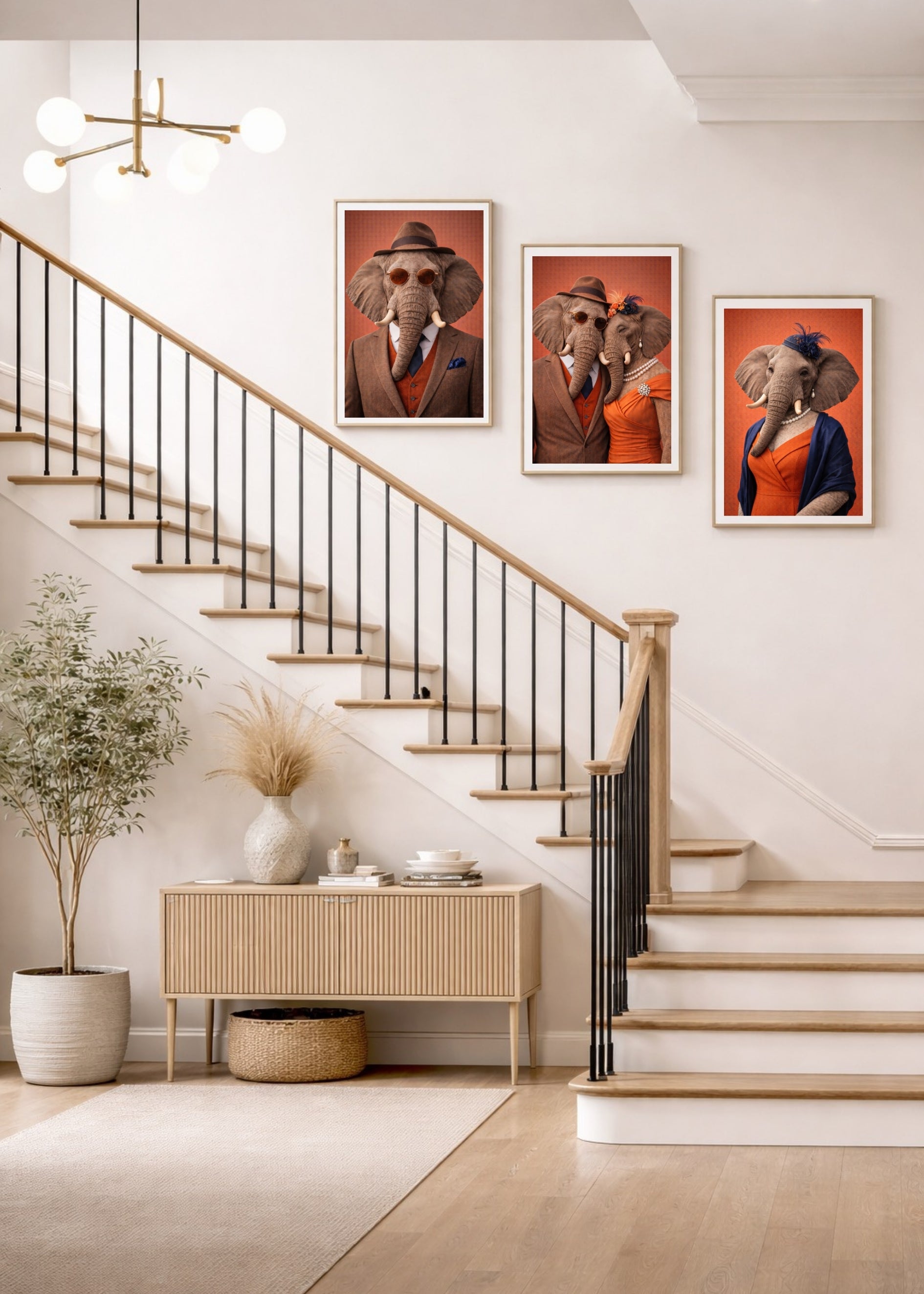 Cette série met à l’honneur l’éléphant, symbole de sagesse, de mémoire et de loyauté. Dans un univers aux teintes orangées et profondes, ces portraits racontent une histoire de solidité, de tendresse et de liens indéfectibles.